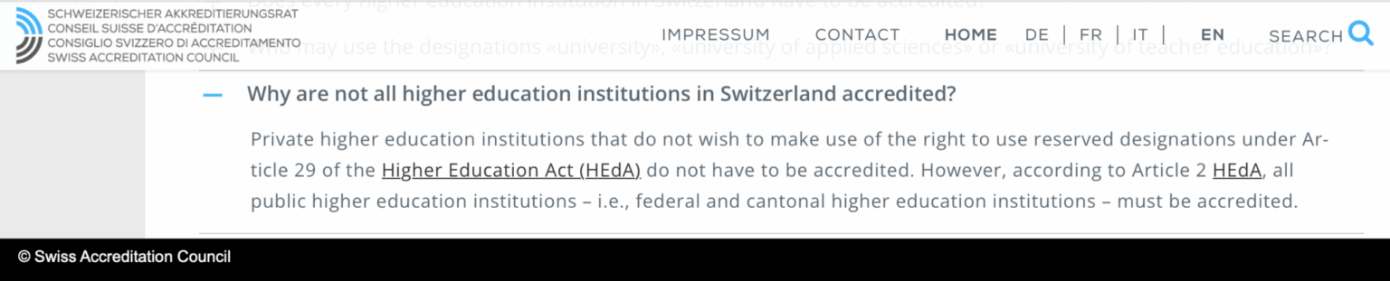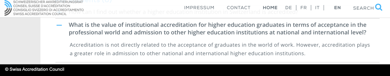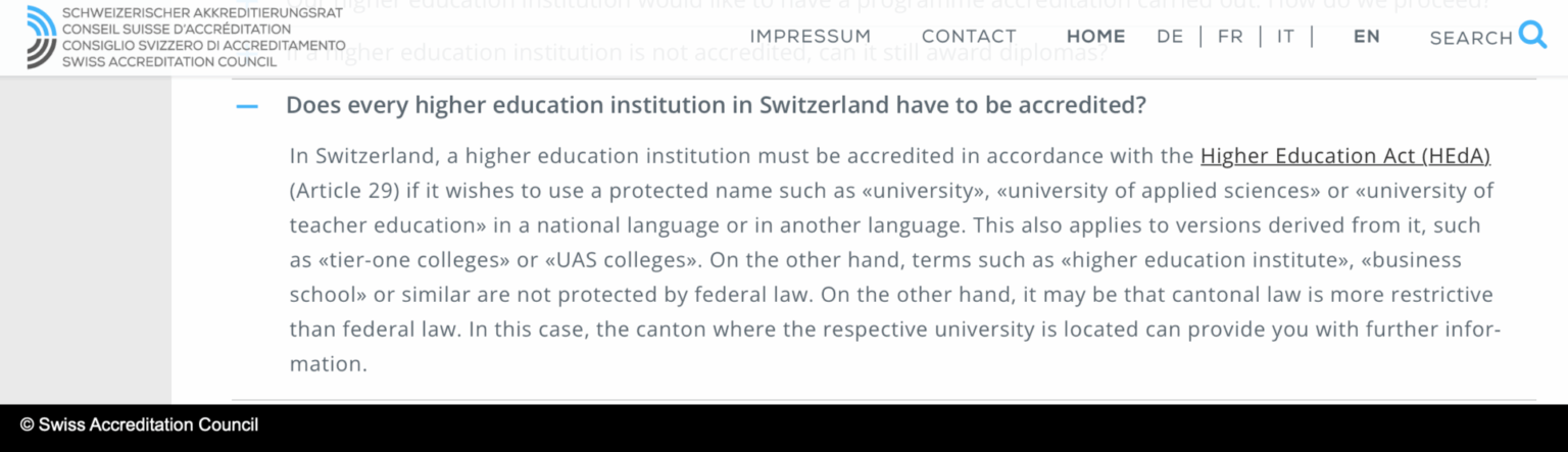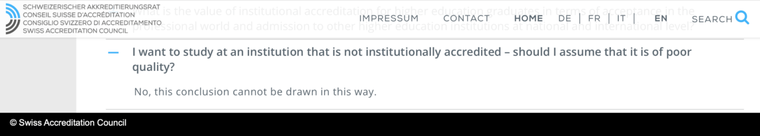 (Swiss Accreditation Council, FAQ)