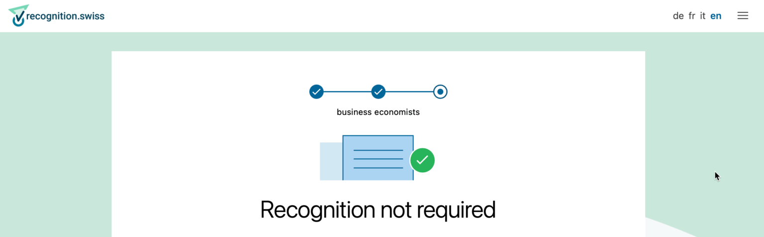 Ngành Business Economics và các ngành liên quan đến Quản trị và quản lý là ngành thuộc nhóm “Non-Regulated”, ứng viên tốt nghiệp không cần làm chứng chỉ hành nghề hoặc bất kỳ thủ tục công nhận nào khác sau khi có bằng để làm việc tại Thụy Sĩ.