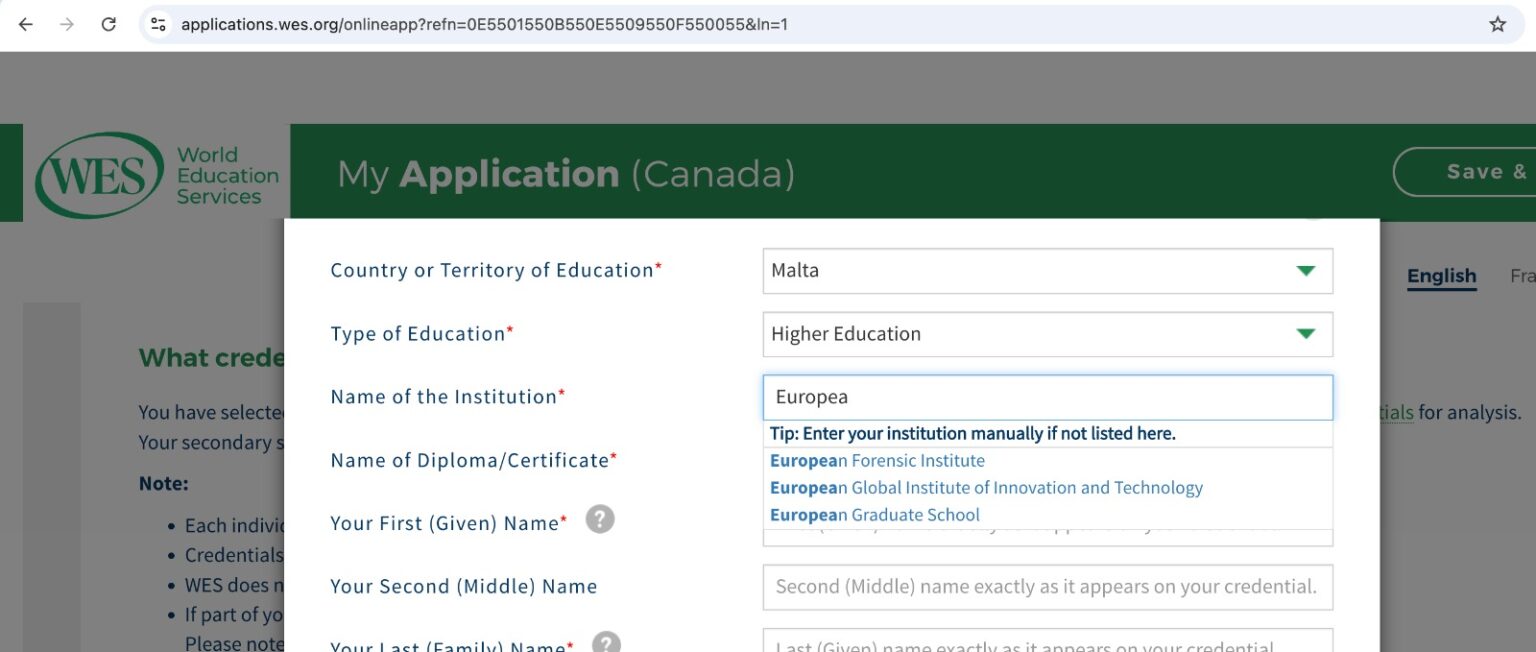 European Global Institute of Innovation & Technology (EU Global), Malta hiện được liệt kê trong danh sách của World Educational Services (WES). Việc EU Global xuất hiện trong danh sách của WES tạo điều kiện thuận lợi cho quá trình đánh giá văn bằng (credential evaluation) phục vụ mục đích học tập tiếp tục và tuyển dụng lao động tại các quốc gia như Hoa Kỳ và Canada.