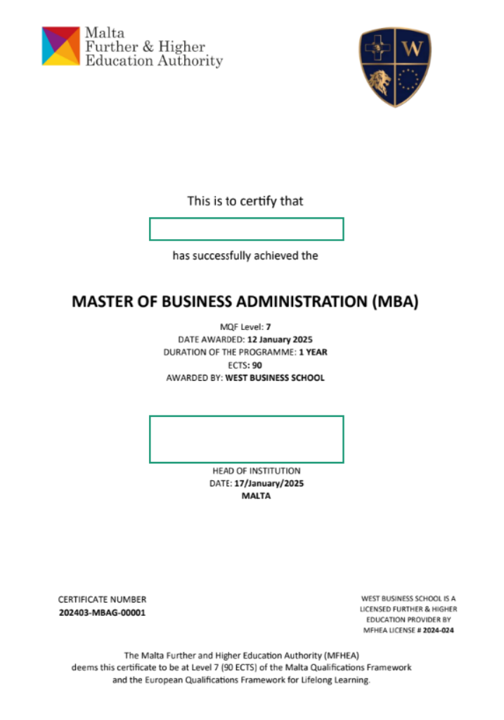2. Văn bằng kép MBA với West Business School, Malta