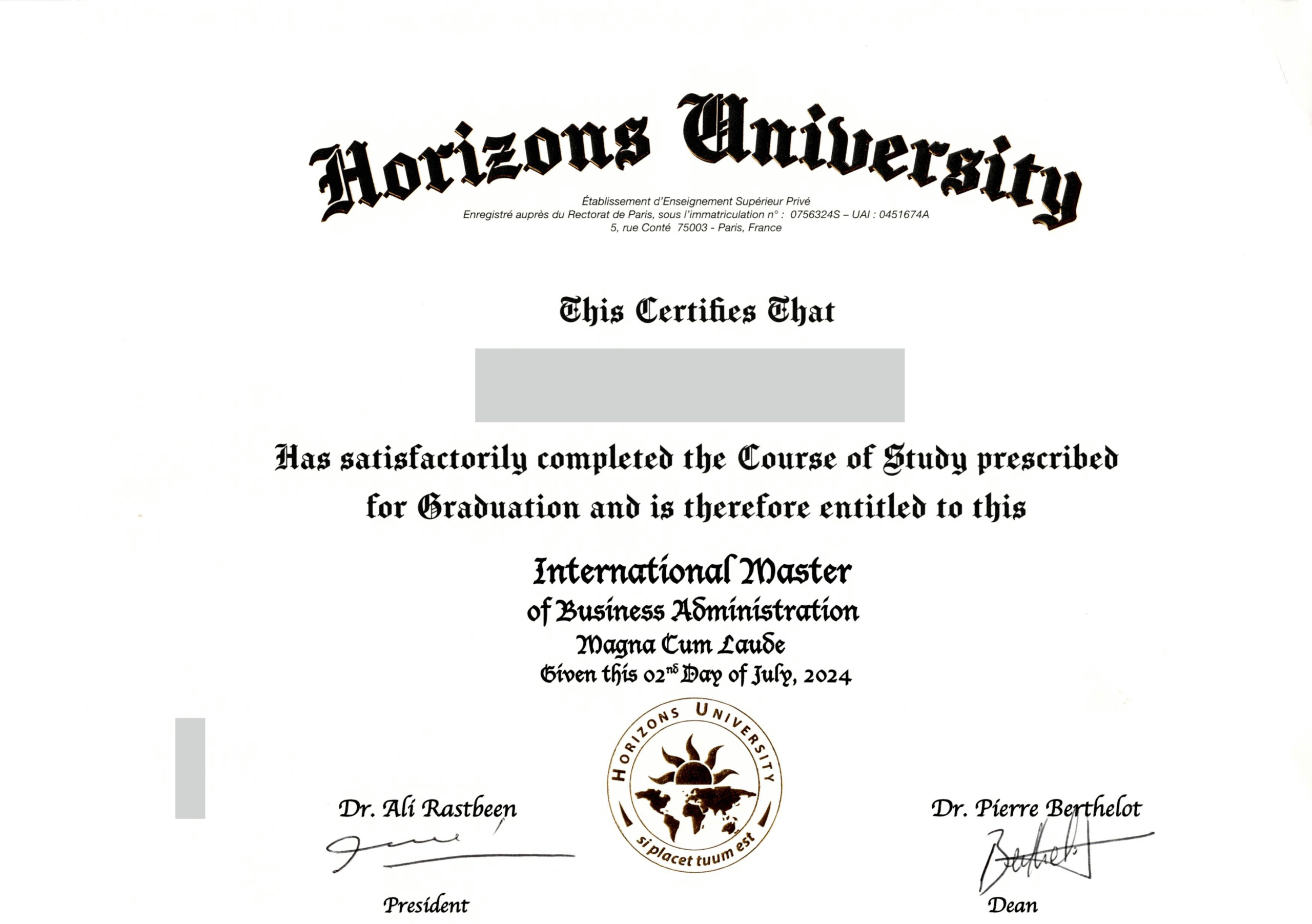 1. Văn bằng kép IMBA với Horizons University, Cộng hòa Pháp